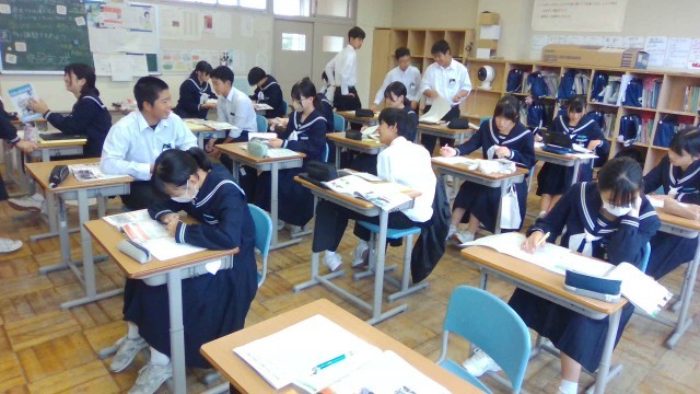 行事の前後、私は2年生の教室をのぞくのが楽しみです。担任の先生が子供たちに熱いメッセージを送っておられることが嬉しいです。がんばる指針を示された生徒たち。読む生徒も意欲を高めたり、自分を鼓舞したりしています。今日は行事と代休あけのちょっとけだるい日、ですが、2年生には担任パワーが注入されています。