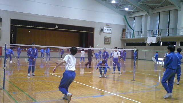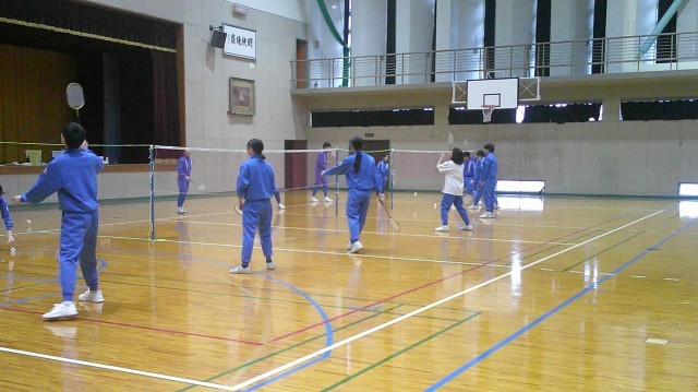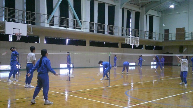 2年生の保健体育では、バドミントンが新しく始まりました。ラケットの操作に慣れる、いろいろな打ち方を知ることが今日の学習です。うまくラケットにあたると美しい放物線を描いてシャトルが飛びます。爽快感もあります。体を動かすことの楽しさを大いに味わった1時間でした。