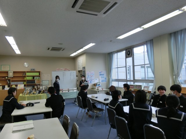 1年生の英語の時間。ALTの先生に「自分が選んだ写真についてスピーチする」活動をしています。1年間の英語学習の総まとめ。使える文型、英単語を総動員して考えます。思いが伝わるといいな。
