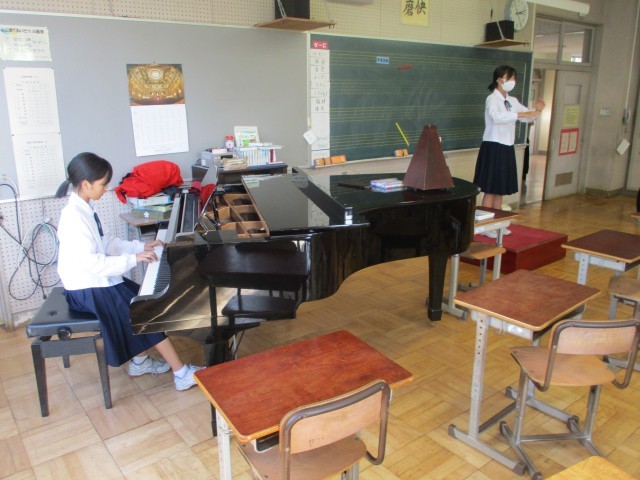 音楽の授業では、10月の合唱発表会に向けて練習を進めています。