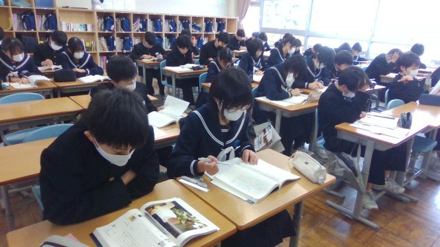 第一学年は、国語の時間に『少年の日の思い出』を真剣に読み込んでいました。