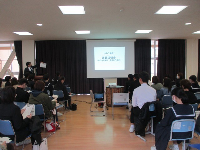 3年保護者の皆様には授業参観に続いて進路説明会にご参加いただき、今後の手続・日程等について親子で理解を深めていただくための貴重な時間となりました。ありがとうございました。納得できる進路選択ができるよう、サポートして参ります。