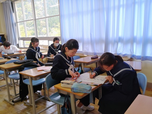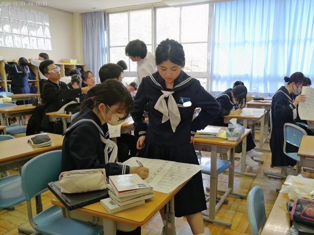 本日、3年生は実力テストを行いました。入試本番を意識した真剣な表情で取り組んでいます。冬休みの努力を自信に変えて、一人一人が納得のいく結果を出せるよう願っています。体調管理に気をつけながら、みんなで受験シーズンを乗り越えていきましょう。