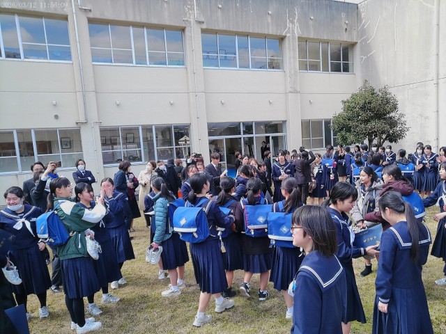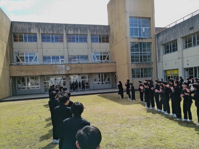 卒業生は、思い思いの挨拶をしたあと、中庭で在校生に見送られ、学び舎から旅立っていきます。