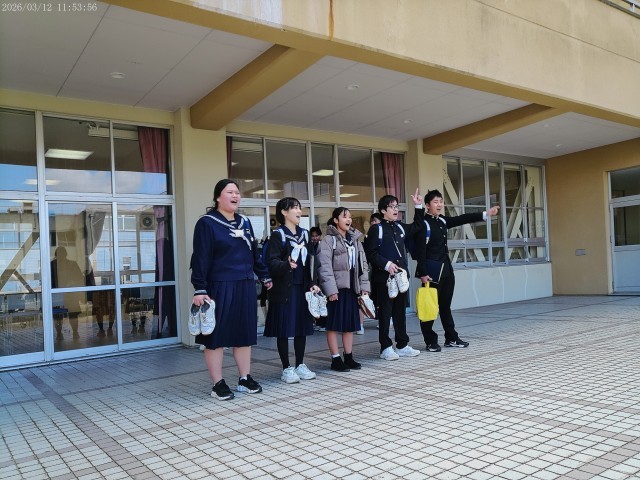 卒業生は合唱曲「正解」を、また、全校生徒全員で合唱曲「旅立ちの日に」を歌いました。