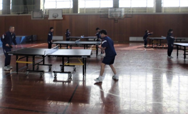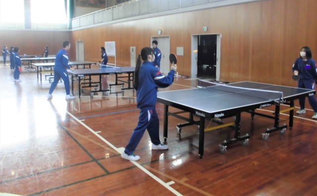 3年生の保健体育の様子です。元気に卓球とバドミントンに取り組んでいます。