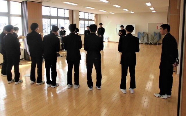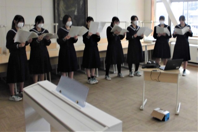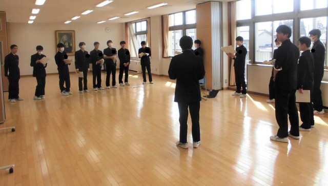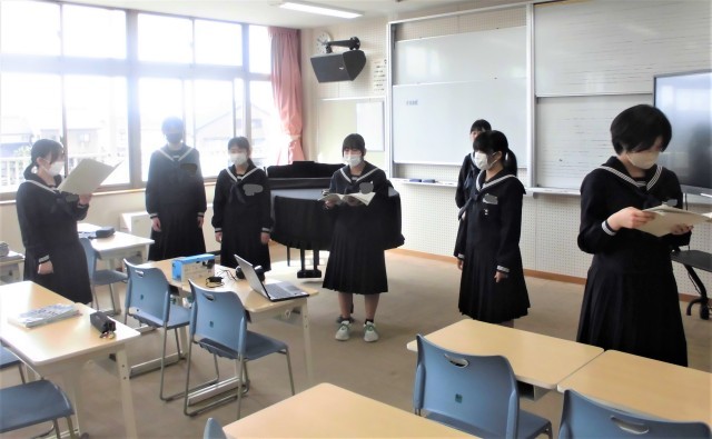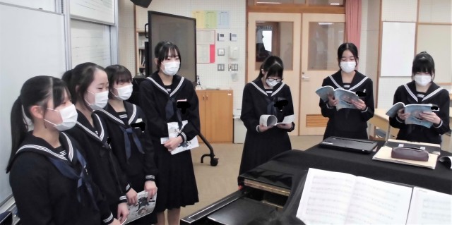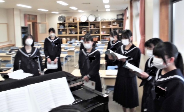 3年生の音楽科です。卒業式で歌う曲を練習中です。心を込めて歌っていました。
