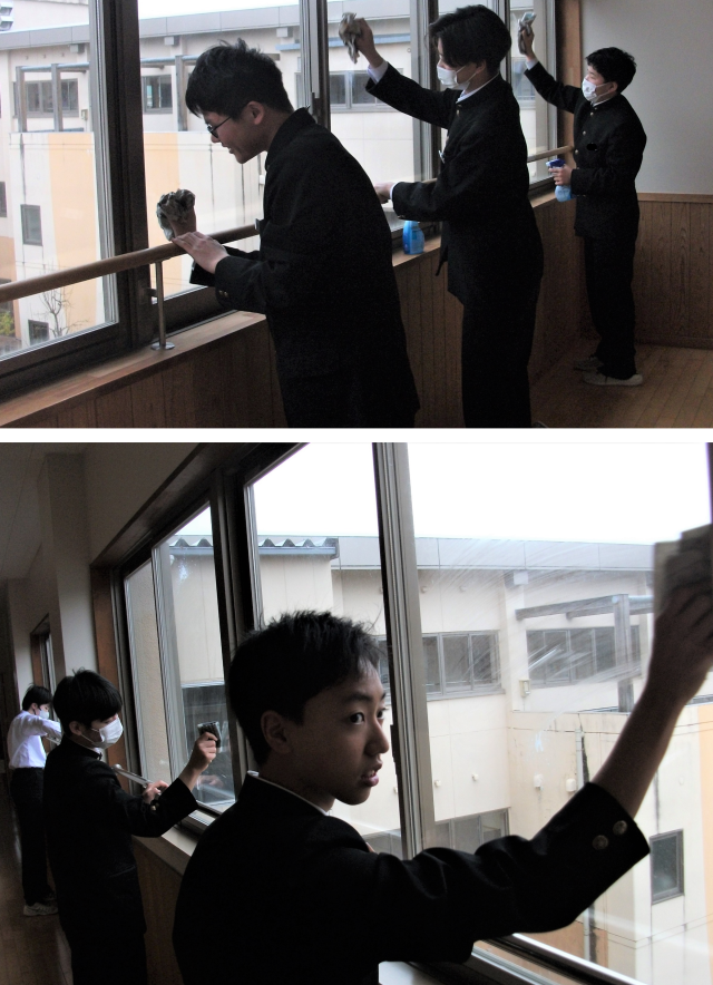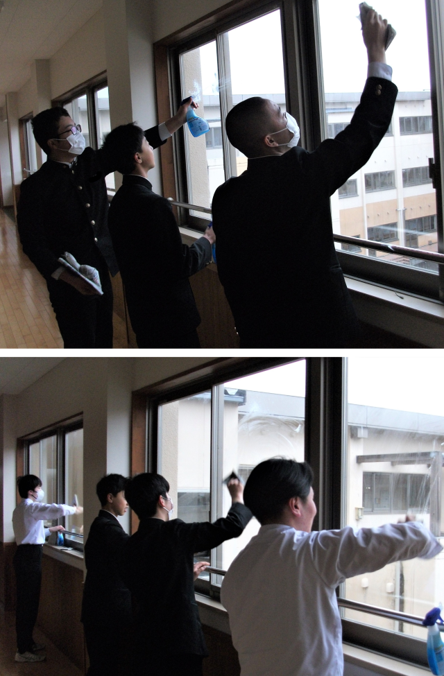3年生の「感謝の清掃プロジェクト」の活動の様子です。清掃活動を通して、これまでお世話になった方々や校舎への感謝を伝えるため、朝や放課後に清掃活動を行っています。今日も朝から活動している生徒たちです。こちらこそありがとう!