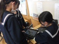 2年生の保健体育の授業では、タブレット端末の録画を活用して、跳び箱の技を高める授業でした。生徒は、グループになって、お互いの跳び方をタブレット端末に録画し、アドバイスを交換していました。自分の技は高まったでしょうか。
