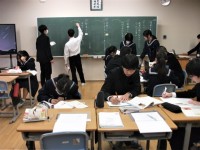 3年生の数学科の授業では、「2次方程式の利用~条件に合うか、解を吟味しよう~」という学習課題で、学習を進めていました。数学科の時間は、教え合いがスタンダードになっています。今日の授業でも、教え合い、学び合う姿が多くみられました。
