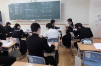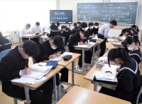 3学年の学級活動の時間では、1学期の振り返りと今後の活動の確認が行われました。「生活と学習に関するアンケート」への回答をはじめとし、係活動の取り組みのよさと改善点を話し合ったり、夏休みの「オープンハイスクール」に向けて確認したりしました。どの生徒も真剣な表情を見せています。