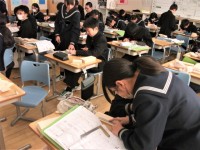 1年生の技術科の授業では、「製図を学ぼう」をテーマに、ワークを活用して、製図をしました。これが、3DーCADの基礎となります。