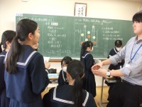 3年生の英語科の授業では、全学級で「パラスポーツをALTや学級の生徒に紹介しよう」という言語活動を通して、授業を行っています。今日も、この学級でプレゼンの発表が行われました。頑張って英語で説明している生徒たちです。