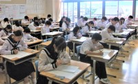 1年生の保健体育科の授業では、「マット運動ととび箱の技に挑戦」という学習課題で、自分で設定した技の練習を行っています。今日は、タブレット端末で撮影して、どうすれば自分の技が向上するのか考えて取り組みました。