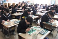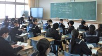 1年生の数学科の授業では、データの活用単元で、「○○を使ってA年度のデータを整理・分析しよう」という課題で学習を進めています。写真は、2学級の数学の授業です。データを整理・処理している生徒たちです。