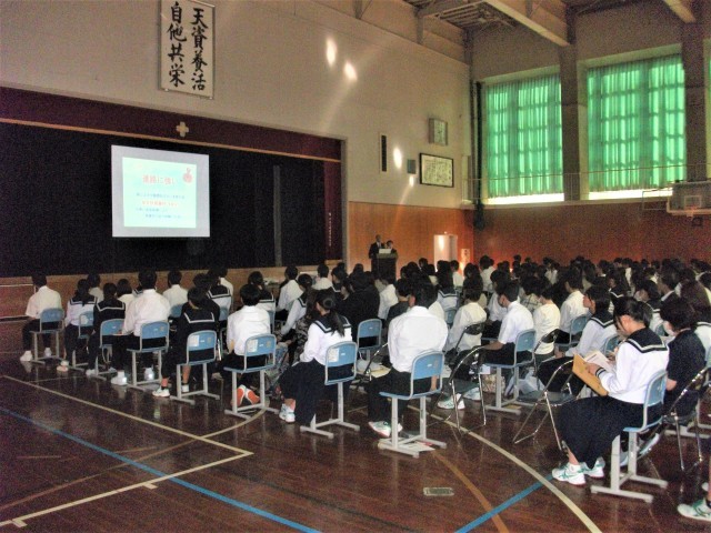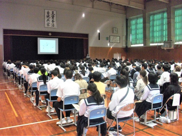 3年生の私立高等学校説明会の様子です。今日は、県西部にある4つの私立高等学校に来校いただき、それぞれの学校の特徴や入試の説明等をお話してもらいました。生徒は自分の進路選択のため、真剣に話を聞きました。これから県立高校の一般入学願書を提出する2月下旬頃まで、自分の進路先を考える大切な期間となります。頑張れ3年生!先生たちも精一杯寄り添います!