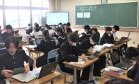 3年生の社会科の授業の様子です。今日の学習課題は「三権分立とは、どのようなしくみか?」でした。写真の場面は、立法(国会)、行政(内閣)、司法(裁判所)のどれが国民と近い関係にあるか話し合っている場面です。
