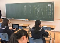 2年生の保健体育科のサッカーをしている様子です。写真の場面は、ドリブル鬼ごっこのような練習をしている場面です。動きが激しく、写真がぶれています。一生懸命にサッカーに取り組んでいます。