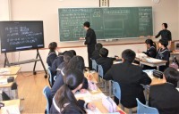 1年生の国語科の説明文の授業です。今日の課題は、「意味段落の要点スライドを見て、構成の工夫をみつけよう」です。なかなか難しい課題ですが、生徒は集中して課題を追究しています。