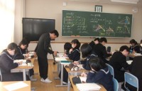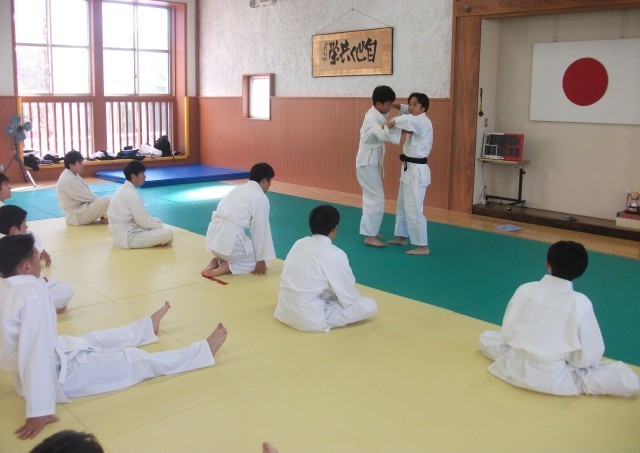 3年生の保健体育科の柔道の様子です。写真の場面は、支えつり込み足の練習をしている場面です。みんな上手で驚きました。指導している体育科(陸上専門)の先生の模範説明も上手で、これも驚きました。先生は、学生時代に黒帯を取得したそうです。