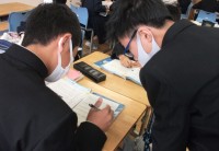 2年生美術科です。「実物そっくりな果物や野菜をつくろう」をテーマに、石粘土で作品を制作しています。今日は、砺波南部小学校と鷹栖小学校の6年生が授業見学に来ました。しっかり参観していました。