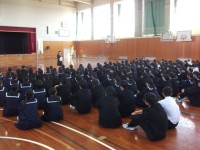 3年生の総合的な学習の時間です。この学級では、「庄川活性化計画プレゼンをしよう」をテーマとして発表しました。砺波庄川まちづくり協議会の嶋田充さん、中川真澄美さんに講師として来校いただき、講評をいただきました。3グループが発表しました。庄川水まつりの新たな企画の提案、庄川水記念公園の活性化の提案、そして、最後のグループは水記念公園付近への大胆な商店街の建設についての提案をしました。嶋田さんや中川さんからは、「新たな提案は、未来の投資となる。とても参考になった。この探究活動をこれからの砺波について考えるきっかけにしてほしい」という言葉をいただきました。これからの砺波市を考えるこの探究活動は、中身の濃い素晴らしい学習活動となりました。