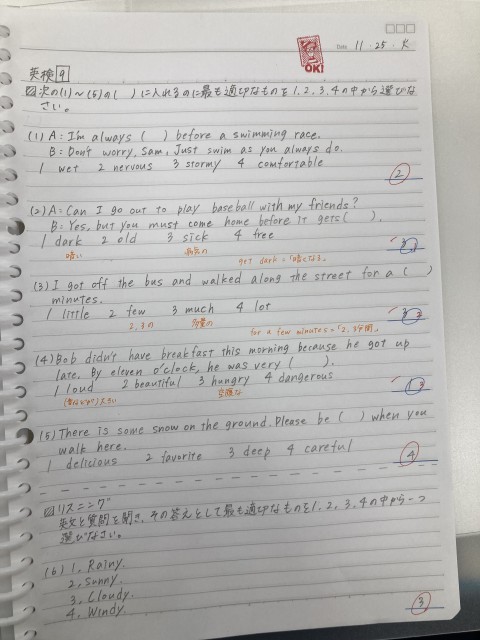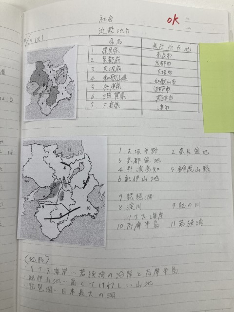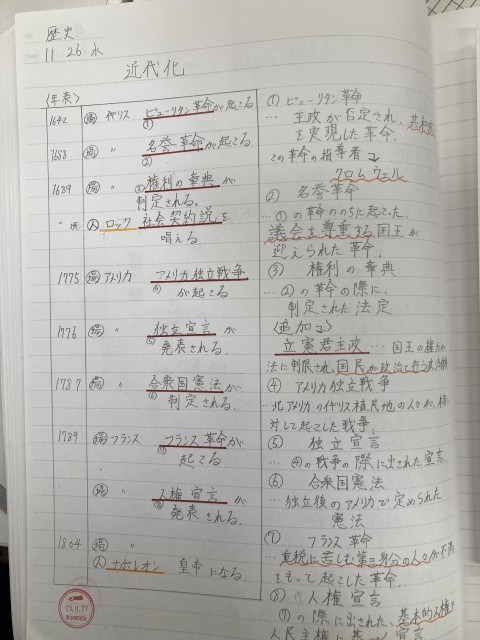 2年生の生徒が毎日行っている、自主学習ノート(通称チャレンジノート)の取組の一部です。