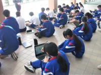 1年生の技術科です。プログラミングの学習を行っています。高い集中力で学習しています。