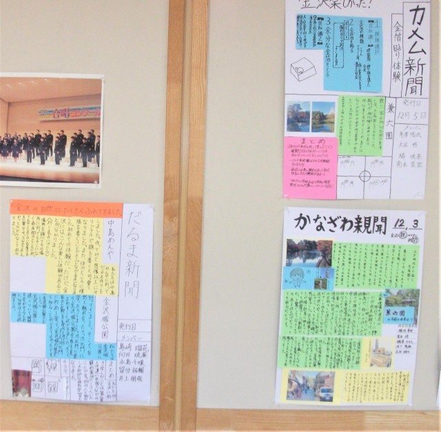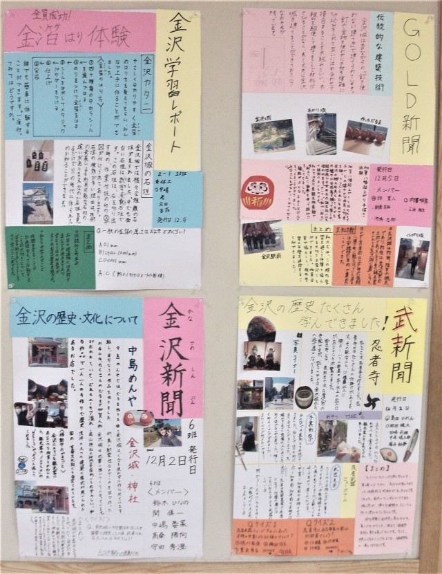 掲示物より 2年生金沢校外学習のまとめより 12/8 公開日 2025/12/08 更新日 2025/12/08 学校の様子 掲示物です。2年生金沢校外学習のまとめ新聞です。班員で協力して作成しました。
