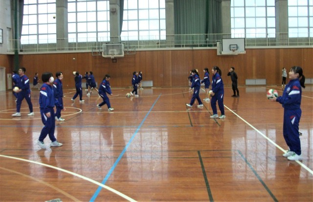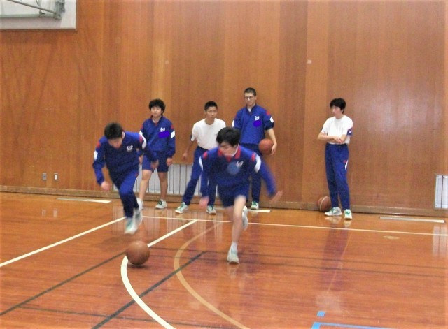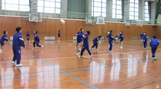 3年生の保健体育科です。バレーボールとバスケットボールに分かれて、学習していました。今日が1時間目ということで、基礎的な練習から始まりました。