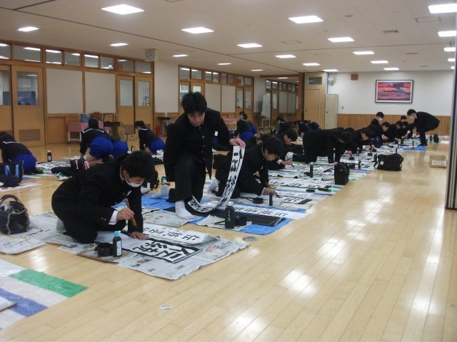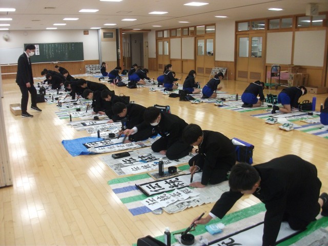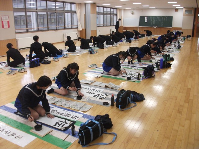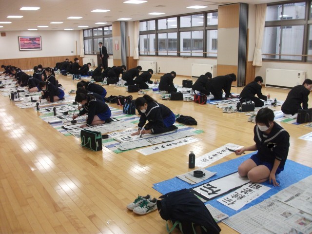 1年生 国語科 書初め練習中 12/8