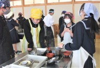 2年生の保健体育科です。バスケットボールに取り組んでいます。写真の場面は、3対3を行っている場面です。バスケットボール部員がいるので、質の高い3対3となっているゲームもありました。