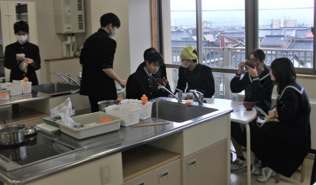 2年生 家庭科 調理実習「隣の班にすまし汁でおもてなし」 12/15
