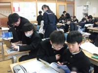 1年生の学級活動です。今日は、1,2限目に学力検査をした後、学校の様々な場所の確認をしたり、学級の係を決めたりしました。この学級は、司書から図書室の使い方の説明を聴いています。