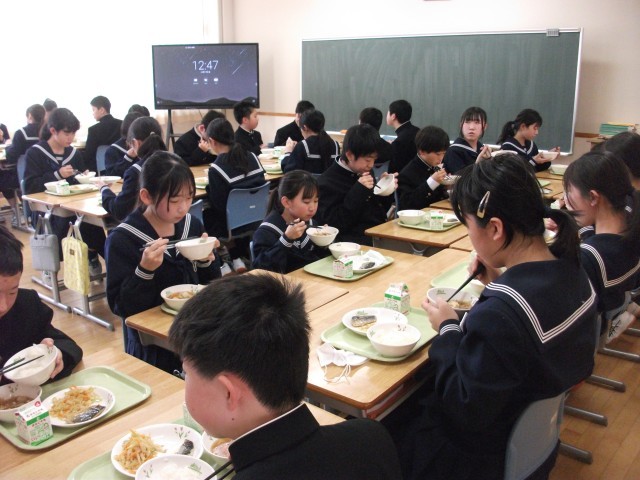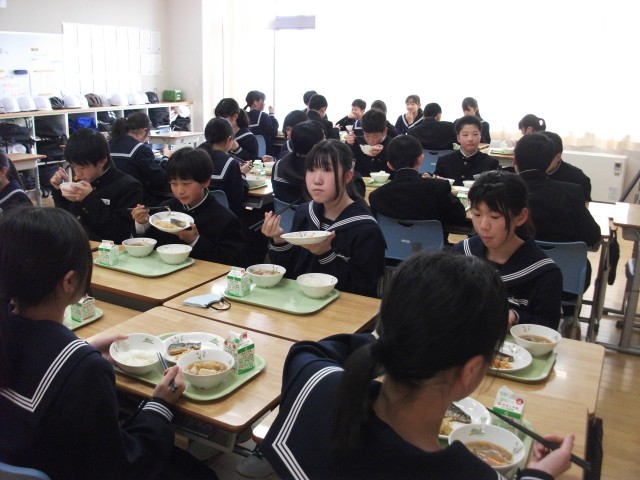 毎月19日は「食育の日」の日です。それにちなみ、本日は地元砺波の食材をたくさん使用した、「となみたっぷり献立」です。1年生の教室では、落ち着いて配膳作業に取り組む様子がみられ、みんなでおいしく地元の食材をいただきました。