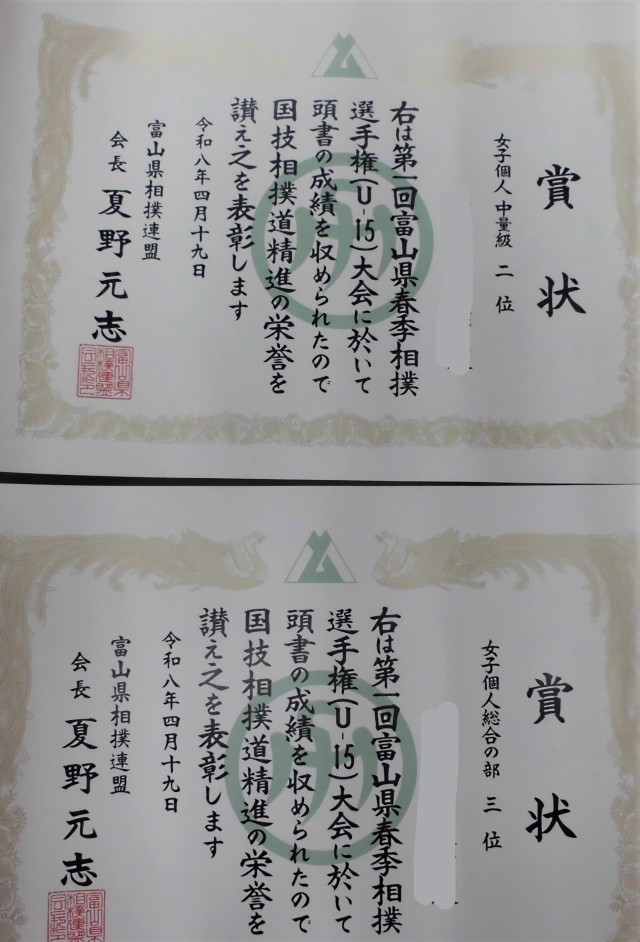 受賞報告 黒部名水柔道大会、県春季相撲大会にて活躍 4/21