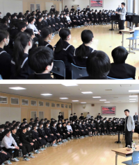 1年生の保健体育科の授業では、跳び箱とマット運動に取り組んでいます。跳び箱は、高さの違う跳び箱を使って、手のつく位置を工夫しながら跳んでいました。マット運動では、後転や伸膝後転の練習を行っていました。伸膝後転はかなり難しいようで、友達の補助を受けながら練習している生徒もいました。