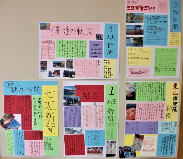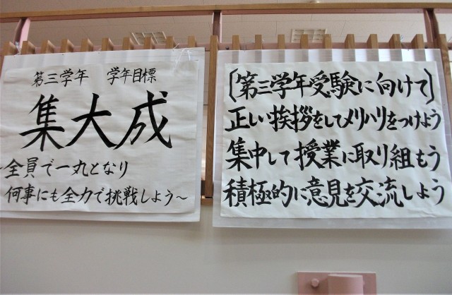 学校の掲示物です。3年生は、私立高校の出願の時期。受験に向かってまっしぐらです。2年生の掲示物には、金沢班別学習の掲示物がありました。生徒はみんな一生懸命頑張っています!