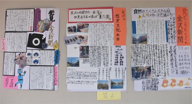 掲示物より 2年生の金沢校外学習のまとめ 12/1