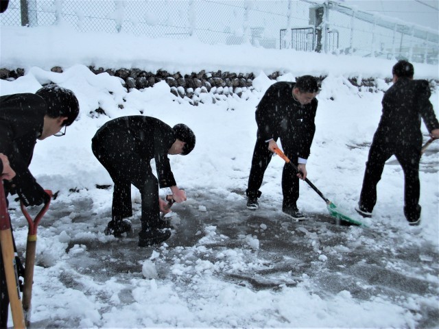3年生の生徒中心に除雪をしてくれました。ありがとう!