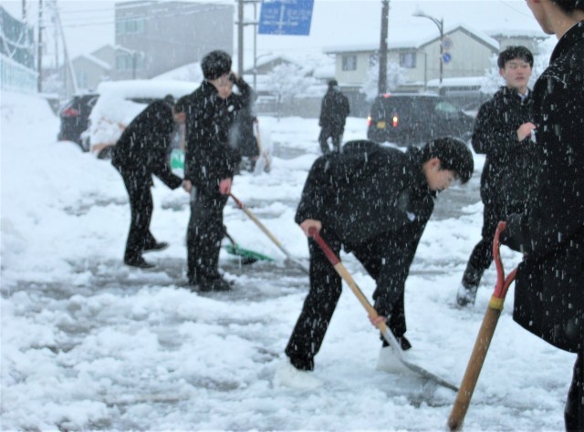 1/23 朝から除雪をしてくれる生徒たち!
