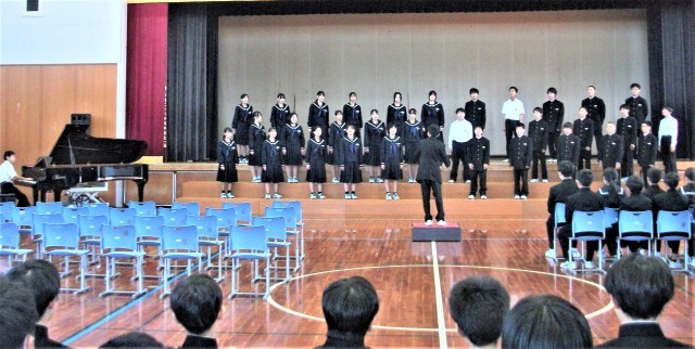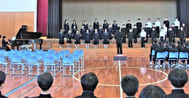 1年生の音楽科の授業です。合唱コンクールに向けて練習していました。ある生徒が、「校長先生、写真撮ってないで、私たちの歌声を最後まで聞いてください」と言われ、フルコーラス聴きました。歌詞の内容と歌声に、ちょっと涙が出ました。