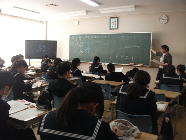 1年生の道徳の授業の様子です。教育実習生が指導に当たっています。今日は大学から視察に来られました。「骨髄バンク」「ドナーによる骨髄の提供」から「生命の尊さ」について考える授業でした。生徒は自分の考えをノートに書いて整理したり、生徒同士で意見交換をしたりして、深く考えていました。