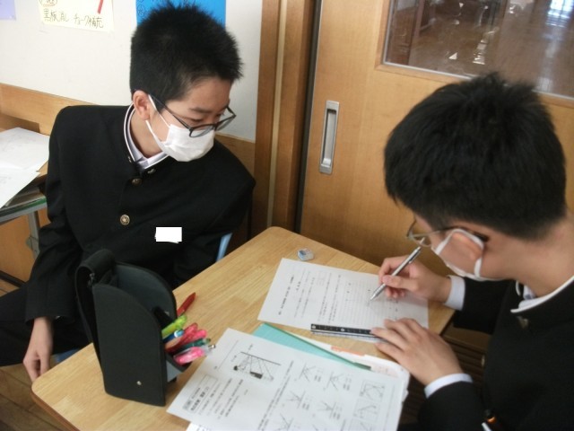 1年生の国語科「故事成語」、英語科「中間テストの振り返り」の授業場面です。インフルエンザに罹患していた生徒も随分と治ゆし、授業が再開できました。多くの生徒が、「学校は楽しい」と言ってくれました。
