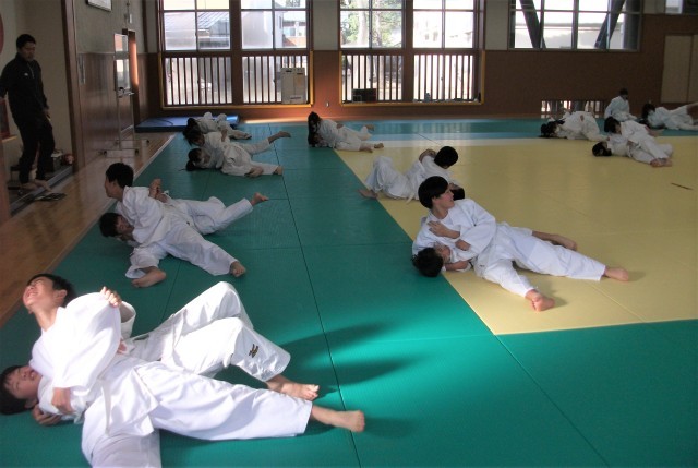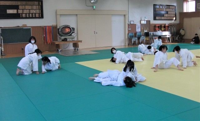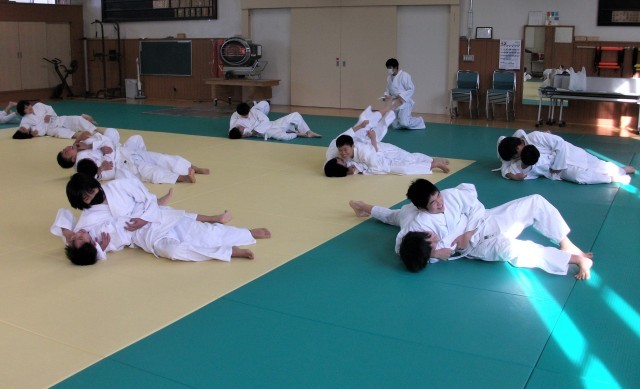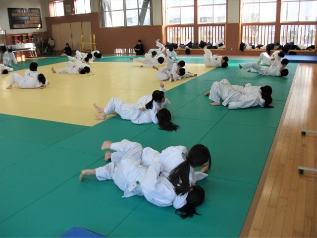 1年生の保健体育科です。柔道に取り組んでいます。今日は受け身の練習。生徒たちは、一生懸命取り組んでいました。立派です。