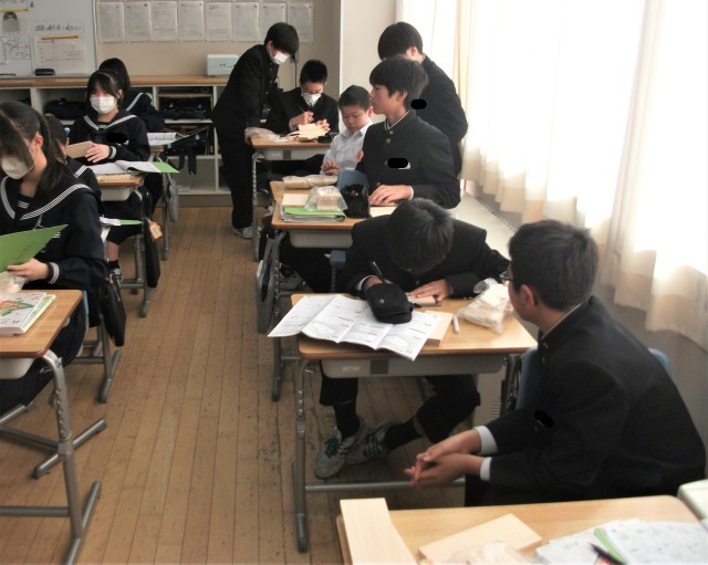 1年生の2学期最後の授業の様子です。明日も終業式や学年集会、学級活動等の活動はありますが、教科の学習としては今日が2学期最後の授業となります。生徒たちは1年の締めくくりにふさわしい、集中した雰囲気で課題に取り組んでいました。