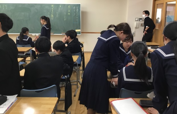 1年生の国語科です。「漢文を訓読しよう」という言語活動で学習しています。孔子の「己の欲せざるところ、人に施すことなかれ」に、返り点を付けています。「自分がしてほしくないことを、人にしてはいけない。」本当にその通りだと思います。