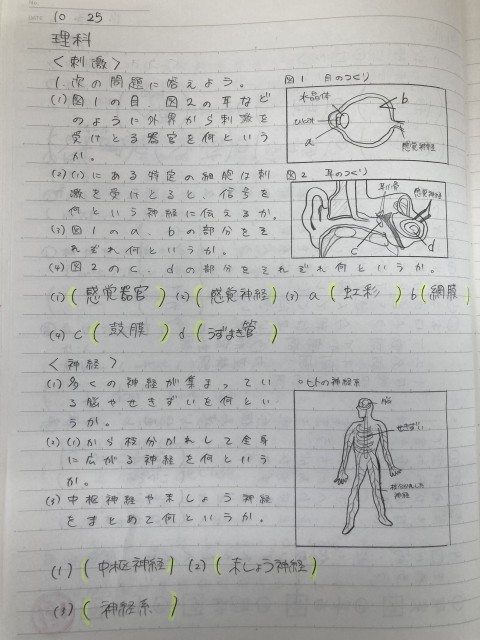 2年生 理科 「刺激を受けっとてから反応するまで」 10/9