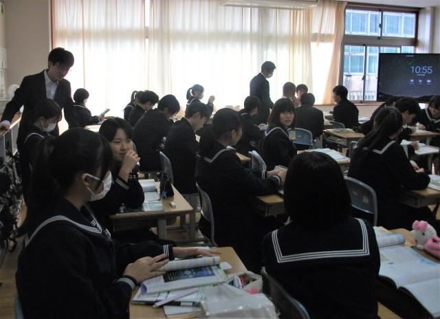 本日の3限目、3年生の全学級が道徳科の授業を行いました。道徳科の教科書の文章を読み、登場人物の言動から、それぞれの道徳的な価値について考えている生徒たちです。教育実習の先生も道徳科の授業を行いました。