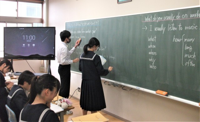 3年生の英語科の授業の様子です。今日の授業の課題は「関係代名詞を使い分けよう」でした。生徒は、課題について、教え合いながら学習を進めていました。